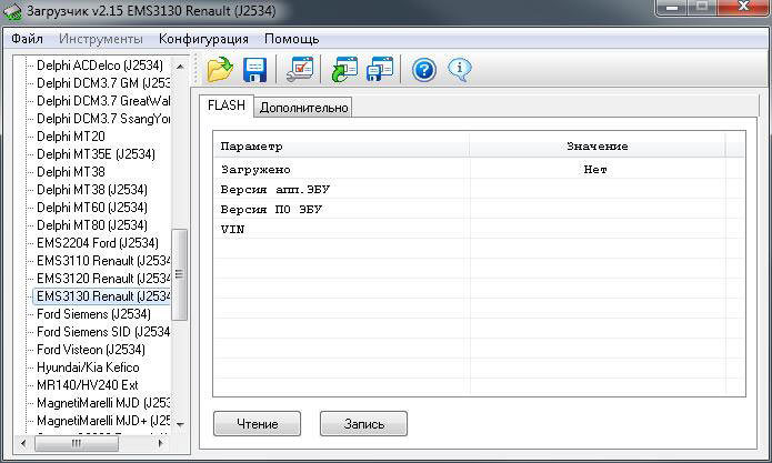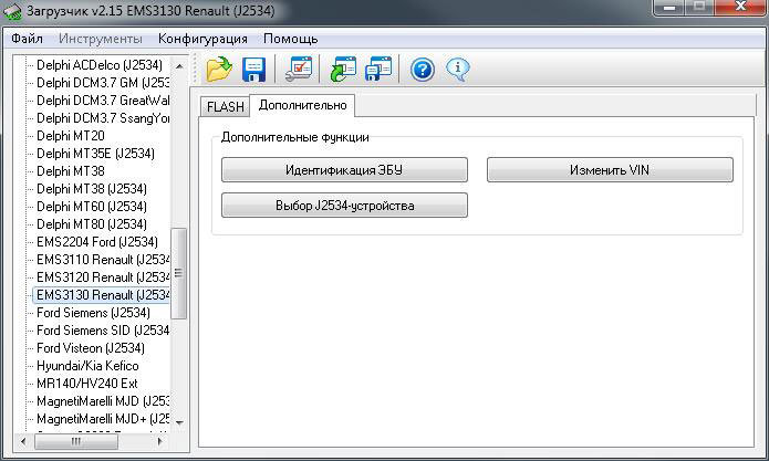 · обмен с ЭБУ происходит через интерфейс J2534, а не через адаптер Загрузчика. Несмотря на это, адаптер Загрузчика должен быть подключен к компьютеру для нормального функционирования ПО.