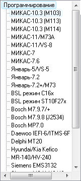 Перед работой с ЭБУ выберите соответствующий тип в списке