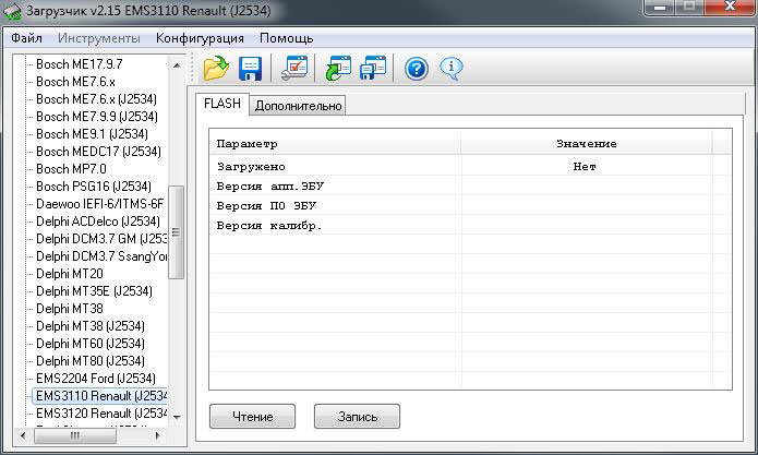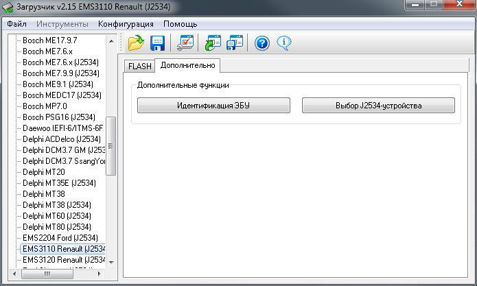 · обмен с ЭБУ происходит через интерфейс J2534, а не через адаптер Загрузчика. Несмотря на это, адаптер Загрузчика должен быть подключен к компьютеру для нормального функционирования ПО.