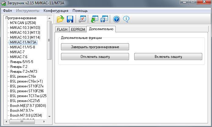 · Отключить защиту – позволяет отключить установленную защиту процессора для работы с ЭБУ посредством BSL-режима. Следует помнить, что подобная процедура может быть произведена всего 16 раз.