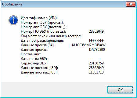· Идентификация ЭБУ – позволяет запросить идентификационные данные ЭБУ.