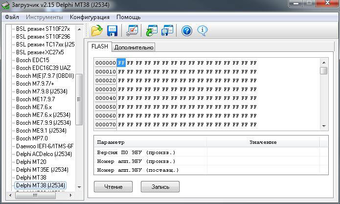 · в модуле реализована функция полной перезаписи FLASH ЭБУ. Для активации данной возможности удерживайте клавишу Ctrl при нажатии кнопки "Запись" до момента соединения с ЭБУ.