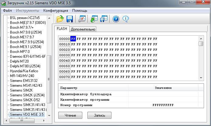 Операция записи ЭБУ перепрограммирует только калибровки и программу, при этом область бут-сектора записываемой программы и содержащейся в контроллере должны быть идентичны.