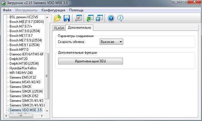 Модуль предназначен для чтения-записи калибровок и программы ЭБУ Siemens VDO MSE 3.5 устанавливаемых на автомобилях TagAz RoadPartner/TaGeR/SsangYoung Rexton с двигателями 2.3/2.8/3.2л через диагностический разъём.Операция чтения ЭБУ выполняет чтение всего содержимого микросхемы FLASH-памяти.