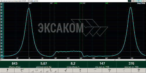 Пример сигнала, зарегистрированного с помощью делителя для ДДЦ и датчика «ДД16», производства компании МОТОР-МАСТЕР, г. Тула.