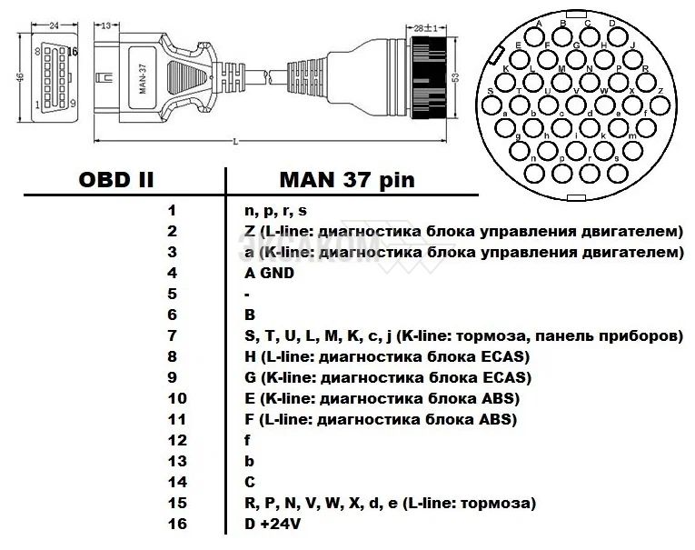 Диагностический кабель MAN с 37 контактным диагностическим разъемом для автомобилей MAN
