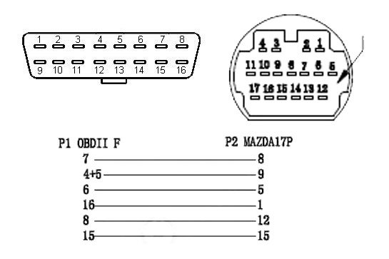 | OBD-II розетка | MAZDA 17-pin вилка |