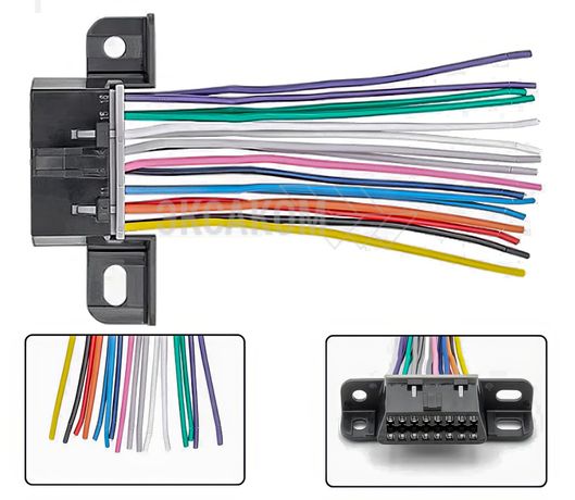 OBD2 разъём поставляется с обжатыми проводами и имеет 2 ушка для крепления под шурупы, все это позволяет произвести замену, ремонт, изготовление удлинителя, переходника применяемого c этим типом разъема транспортного средства.
