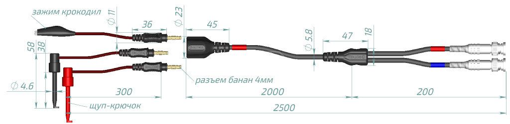 Дизайн дифференциального щупа разработан специально для проведения измерений на двигателях внутреннего сгорания. В качестве шнура используется мягкий микрофонный кабель с плотной экранирующей оплеткой. Разъемы измерительных щупов – «банан» 4 мм. Разъем для подключения щупа к осциллографу - BNC.