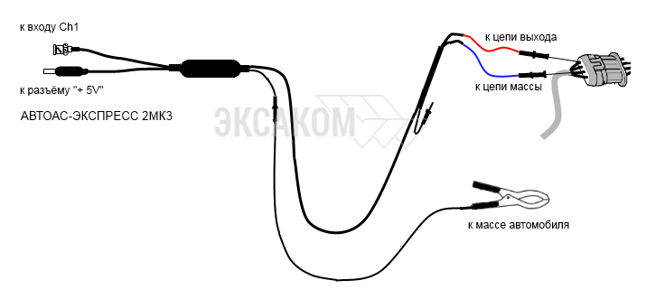 Щуп позволяет регистрировать выходные сигналы датчиков, относительно цепи массы на разъёме датчика: вход щупа с положительной полярностью подключается к выходной цепи, а вход с отрицательной полярностью – к цепи массы датчика.