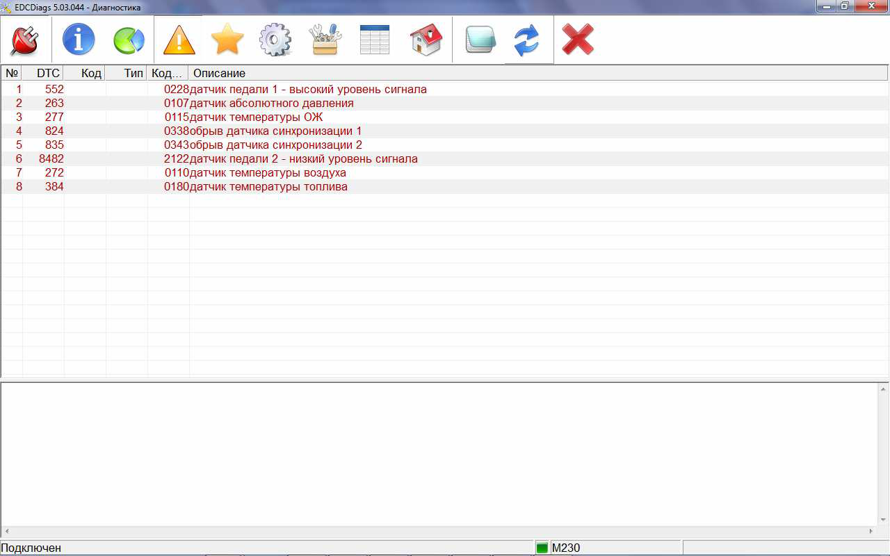 - EDCDiags (получение идентификационной, статистической и диагностической информации ЭБУ, мониторинг параметров ЭБУ в режиме реального времени с возможностью графического отображения информации, запись параметров, тестирования некоторых компонентов