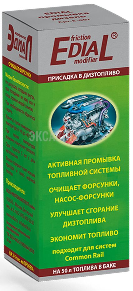 Постоянное применение АКТИВНОЙ ПРОМЫВКИ ТОПЛИВНОЙ СИСТЕМЫ «EDIAL» для ДИЗТОПЛИВА не только позволит экономить топливо, но и увеличит ресурс двигателя не менее чем на 30-40%. Особенно рекомендуется для использования при заправках некачественным топливом для поддержания в работоспособном состоянии топливной системы.
