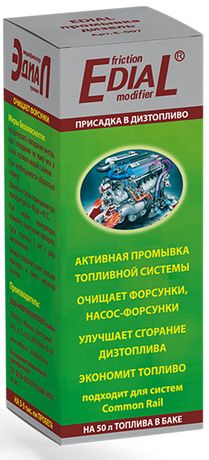 Флакон содержит 50 или 100 мл смеси углеводородного растворителя с активатором топлива «EDIAL» для 50л или 200 л дизельного топлива соответственно (см. на упаковке).