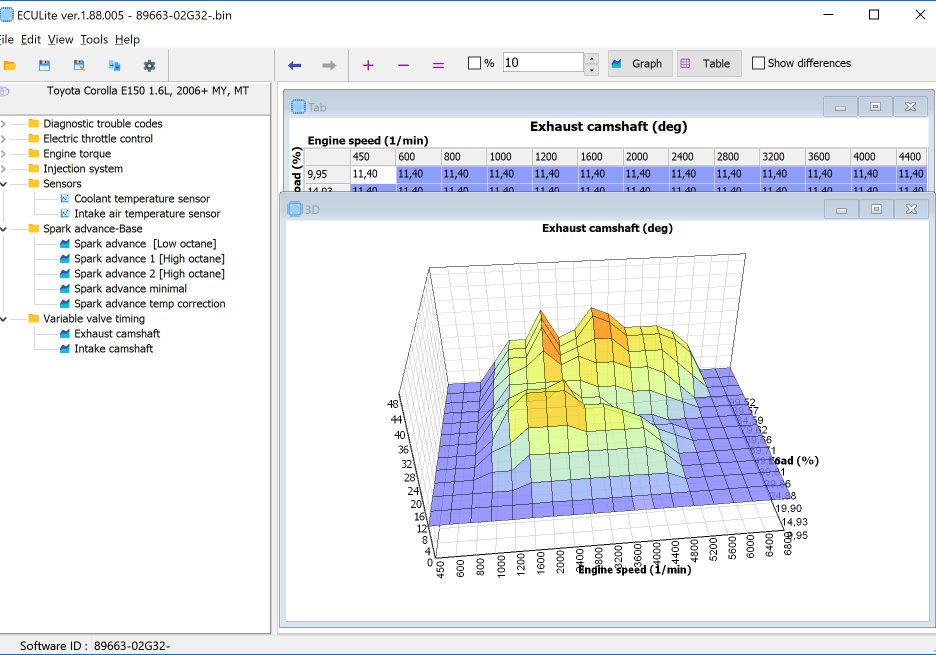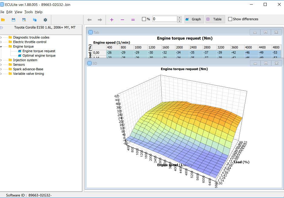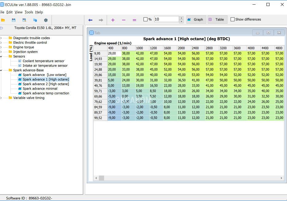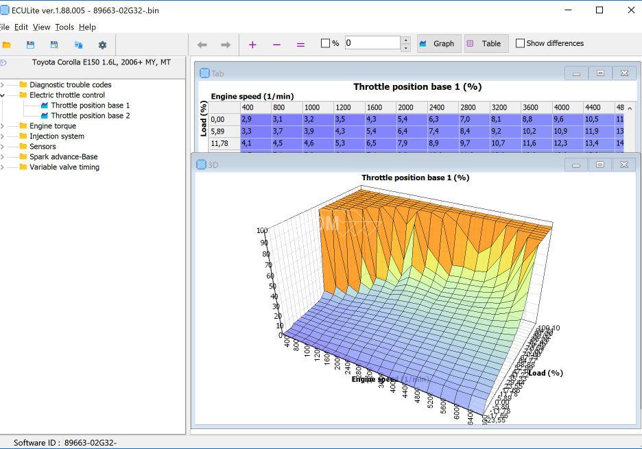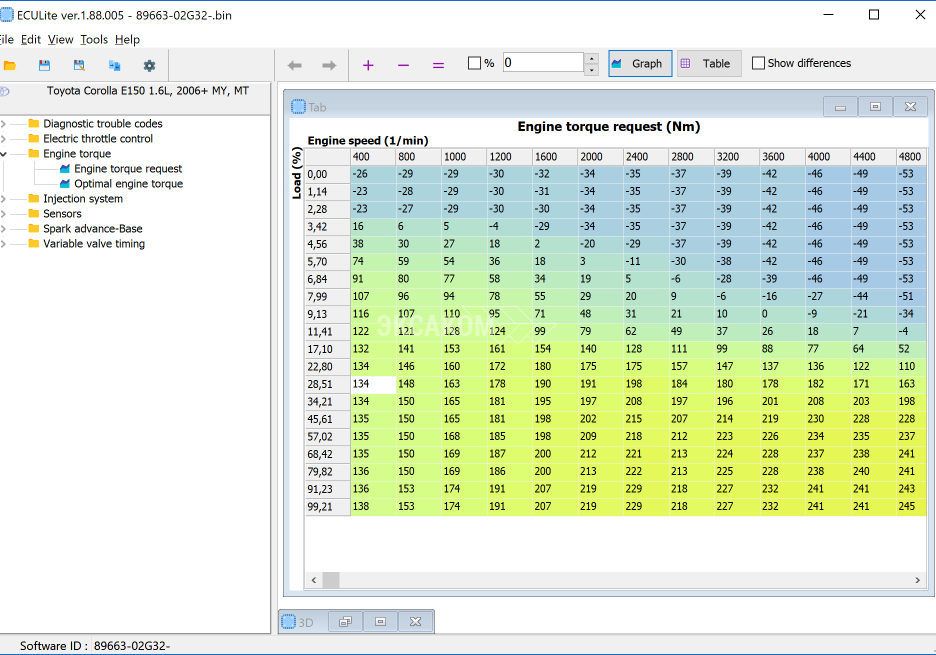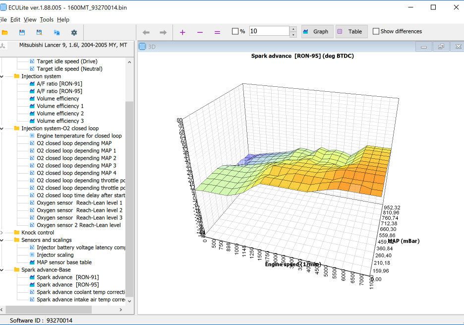 Данная программа позволяет изменять настройки прошивок автомобилей, для проведения чип тюнинга начального уровня. Доступны калибровки угла опережения зажигания (УОЗ), маска детектирования ошибок связанных с неисправностью каталитического нейтрализатора(Catalytic converter system), клапана рециркуляции отработавших газов (EGR), датчика концентрации кислорода (Oxygen sensor), таблицы характеристики дроссельной заслонки, таблица оптимального момента, запроса крутящего момента и др.