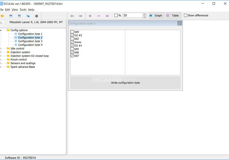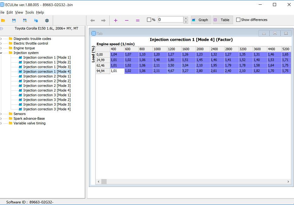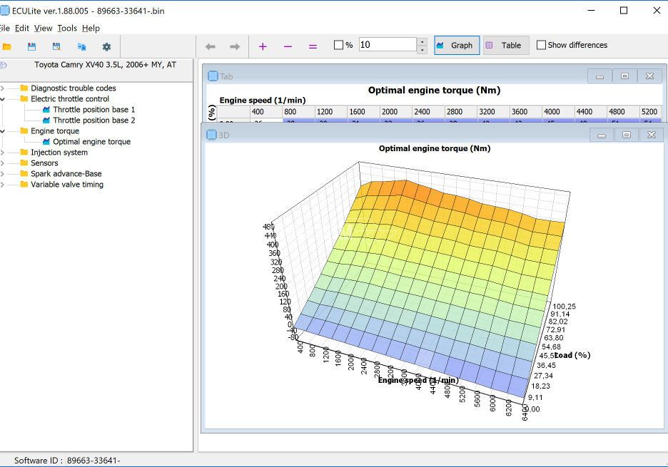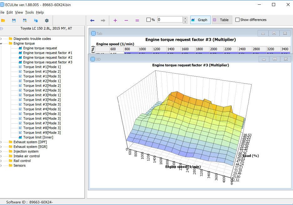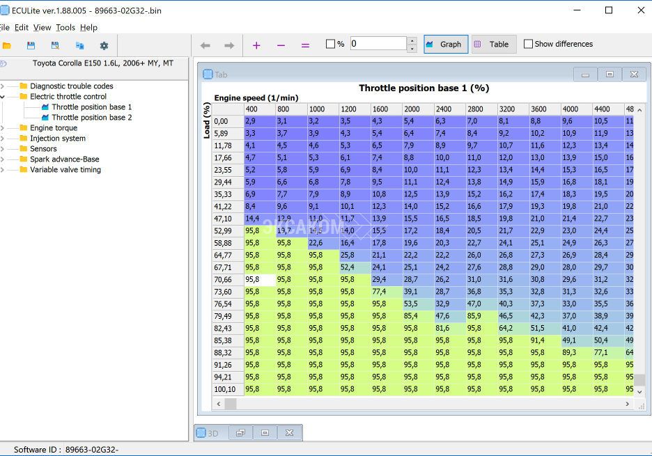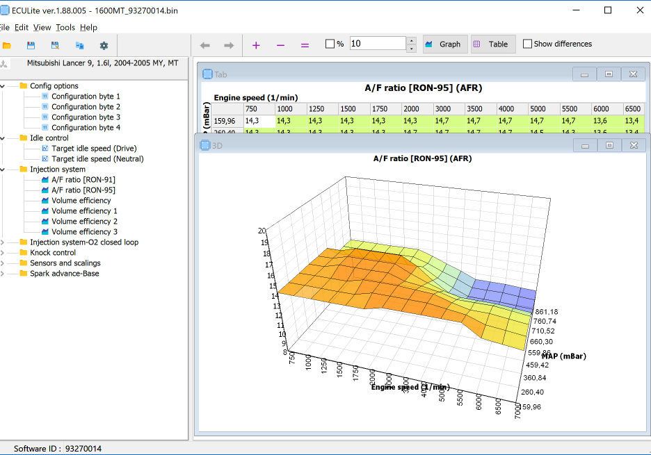 Данная программа позволяет изменять настройки прошивок автомобилей, для проведения чип тюнинга начального уровня. Доступны калибровки угла опережения зажигания (УОЗ), маска детектирования ошибок связанных с неисправностью каталитического нейтрализатора(Catalytic converter system), клапана рециркуляции отработавших газов (EGR), датчика концентрации кислорода (Oxygen sensor), таблицы характеристики дроссельной заслонки, таблица оптимального момента, запроса крутящего момента и др.