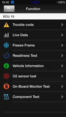 - [Live data]: Вывод текущих параметров В статическом режиме: контроль напряжения, расход воздуха, мгновенный расход топлива, температура охлаждающей жидкости, уголы опережения, скорость вращения двигателя Круиз-режим: время движения транспортного средства, средняя скорость, дневной пробег, средний расход топлива, текущая скорость автомобиля. Спортивный режим: скорость движения автомобиля, температура охлаждающей жидкости, реальный расход топлива во времени (динамическая кривая), ускорение.