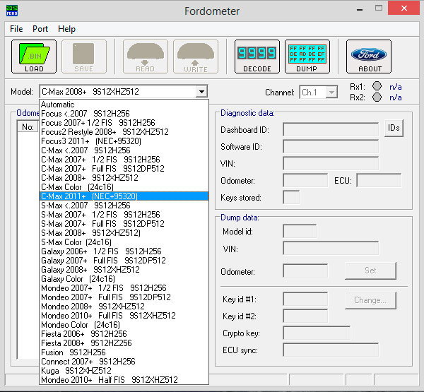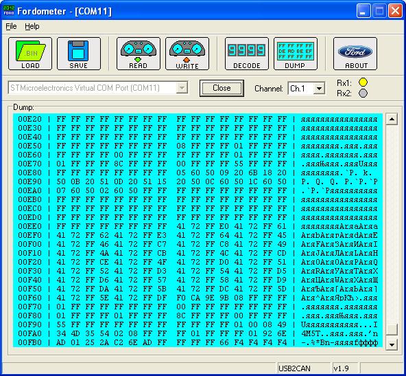 - Поддерживается работа со всеми панелями приборов автомобилей марки Ford, основанных на процессорах FREESCALE 9S12**** ( 9S12H128 , 9S12H256 , 9S12XHZ512 ) и NEC V850+95320 устанавливаемые на ФФ3.