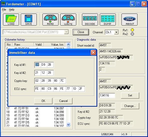 - Чтение и изменение данных иммобилайзера в памяти процессора: идентификаторов и криптокодов ключей, данных синхронизации иммобилайзера с ЭБУ двигателя.