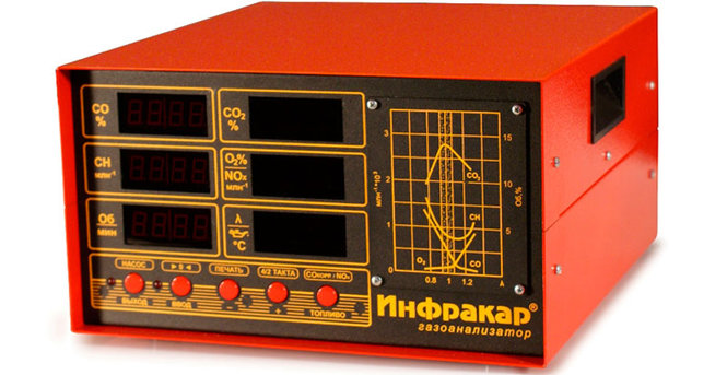 - Автомобильный 2-х компонентный газоанализатор «Инфракар 08.01» предназначен для измерения объемной доли оксида углерода (СО), углеводородов (CН) в отработавших газах автомобилей с бензиновыми двигателями.