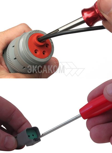 для снятия клемм калибра 4, 8, 12, 14, 16 и 20 и комбинированную отвертку для удаления клина и плоского наконечника.