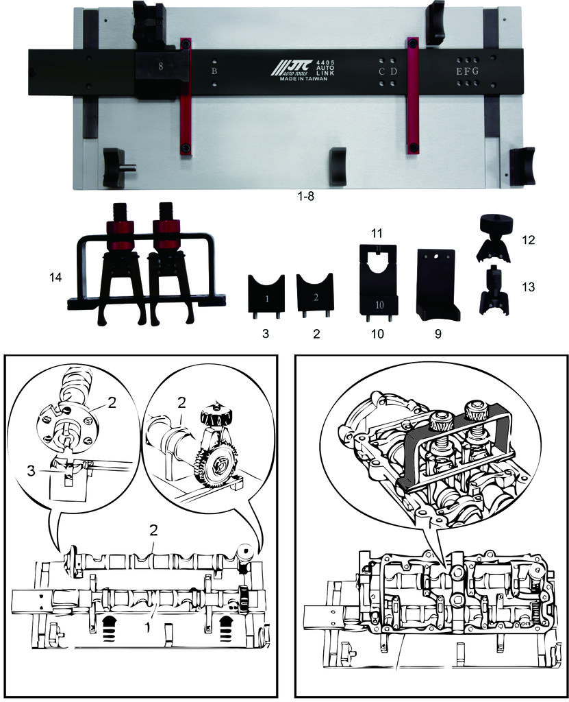 JTC-4405 Приспособление для установки и фиксации распределительных валов VW,AUDI,PORSCHE TDI 2.7,3.0,4.0 (T40094,T40095,T40096)