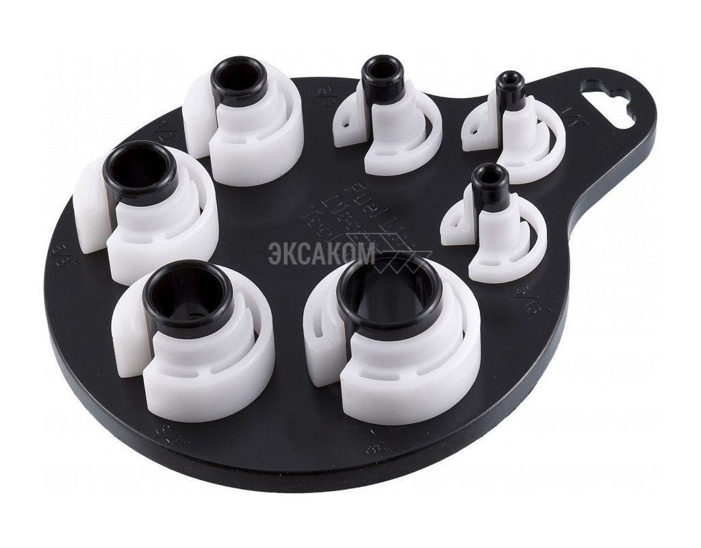 С помощью набора можно легко отсоединить шланги кондиционеров и соединить топливные шланги. Размеры: 5/16", 3/8", 1/2", 5/8", 3/4", 7/8", 1/4"