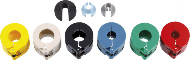 А. Пружинная муфта Доступны 4 размера: 3/8" (красная), 1/2" (синяя), 5/8" (черная), 3/4" (белая).