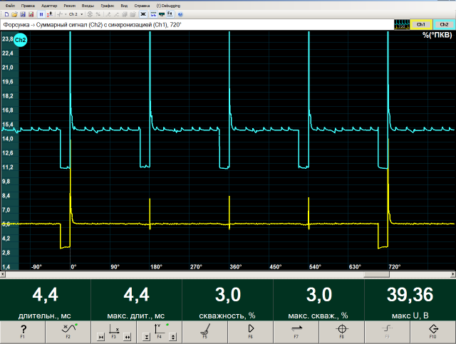 Режим 720гр. Синий график - суммарный сигнал управления форсунками.