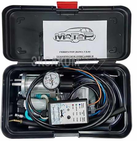 предназначен для эффективного поиска не герметичностей в следующих узлах двигателя: системы впуска воздуха, системы выпуска, системы охлаждения и других систем не допускающих утечек, а также для нахождения не герметичности оптики и проколов шин. Густой и белый дым, подаваемый в место предполагаемых утечек и не плотностей, под небольшим давлением в 0,2-0,5 Bar, позволяет с минимальными затратами времени выявить не плотности, которые любым другим способом выявить зачастую невозможно.