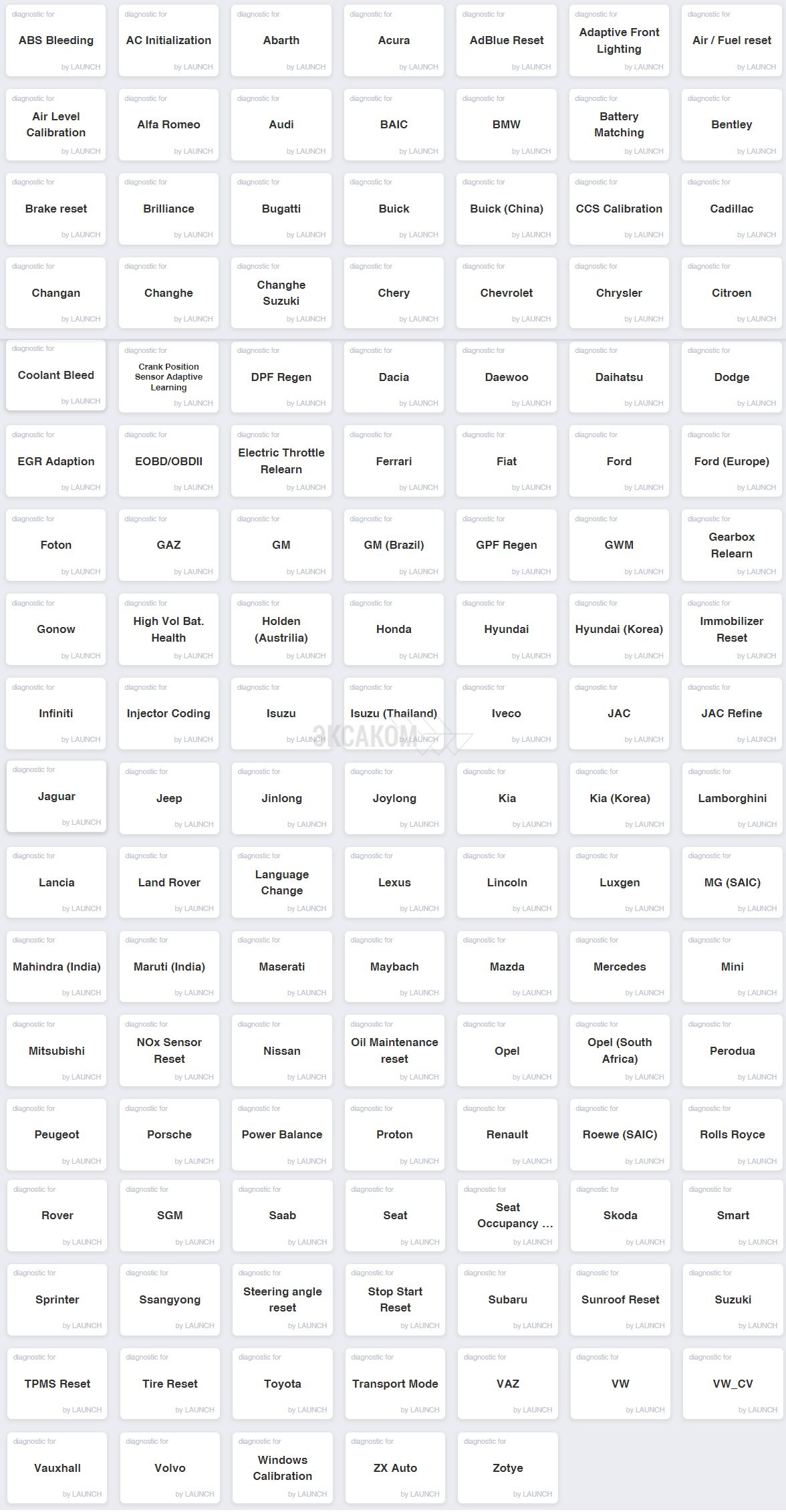 Комплектация программ может меняться по усмотрению компании LAUNCH без предварительного уведомления!