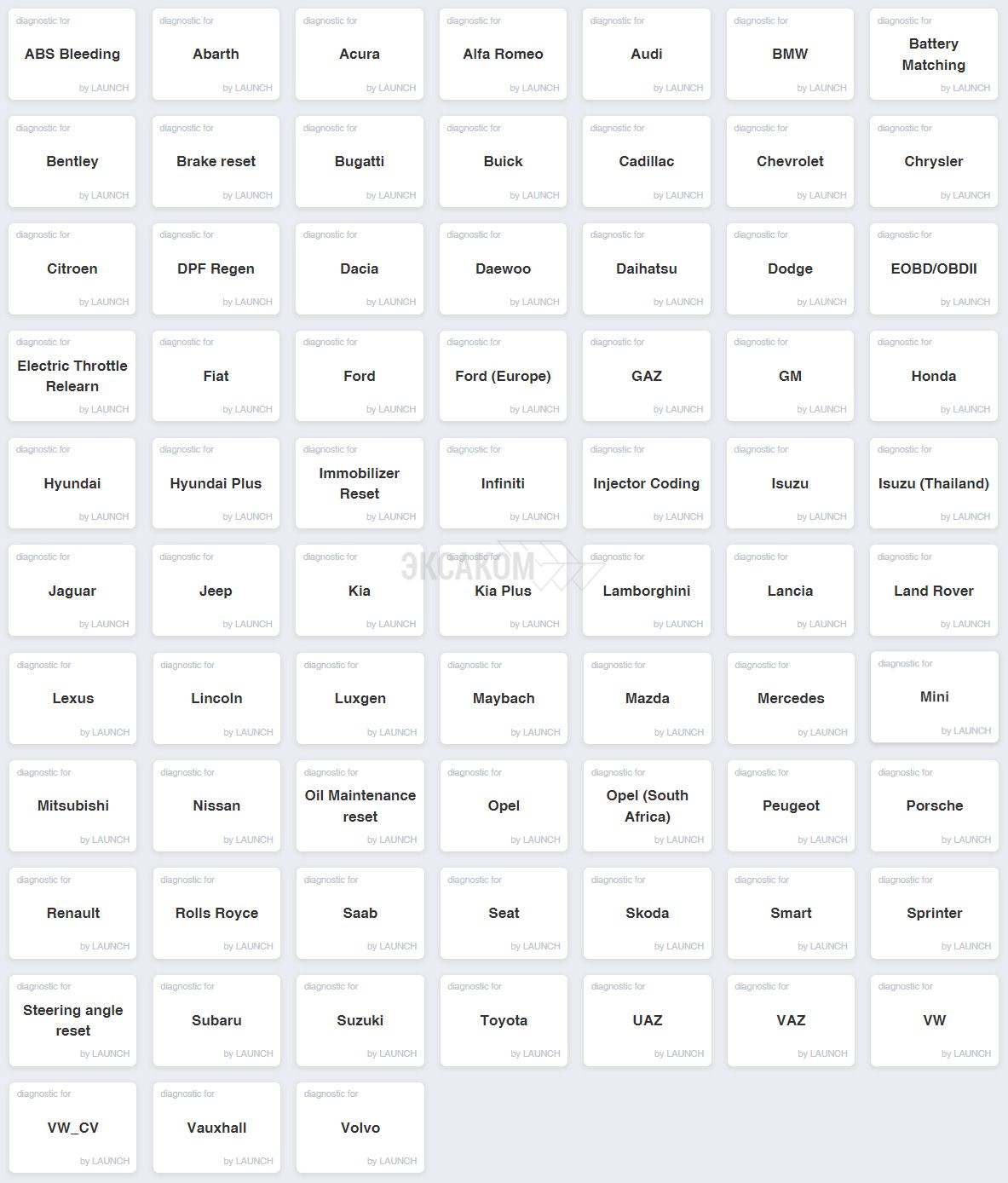 Карта покрытия диагностического сканера Launch Pilot Scan