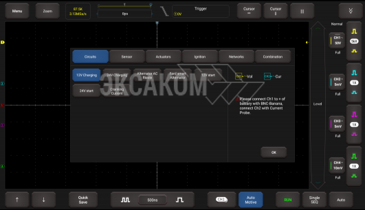 - Множественные автомобильные тесты, которые включают в себя проверку цепей, датчиков, исполнительных механизмов, тесты зажигания и многое другое