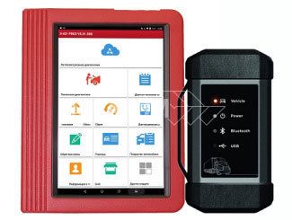- Полный комплект ПО, диагностические функции для грузовых автомобилей;