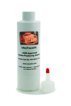 - Люминесцентная жидкость UltraTraceUV, уникальна и запатентована. Минеральные масла не входят в состав этой жидкости, поэтому она была одобрена ведущими автомобильными производителями. Минеральные масла не предназначены для использования в генераторах дыма. Хотя состав жидкости изготовлен на минеральной базе, он был переработан по специальной формуле для того, чтобы не воспламеняться даже при высоких температурах. Кроме того, UltraTraceUV не испаряется и не имеет никакого воздействия на внутренние поверхности деталей и агрегатов автомобилей.