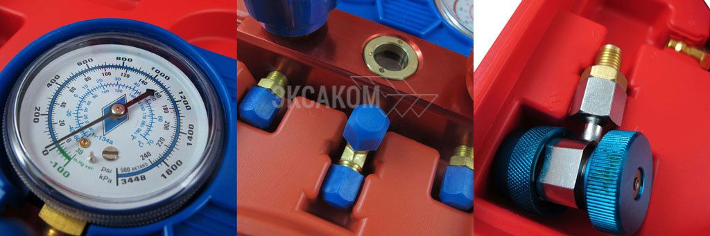 - R-134a коллектор с 60" цветными шлангами (3 штуки),