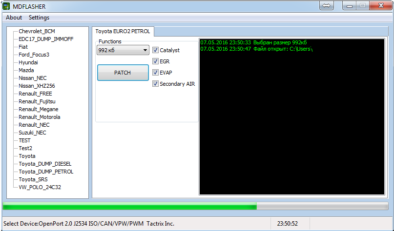 - Программа работает с адаптером J2534: