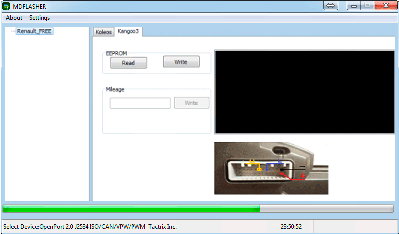 в панелях приборов Visteon устанавливаемые на автомобили Renault, Dacia через разъем диагностики или на столе (подключение в справке).
