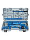 Набор включает в себя гидроцилиндр, ручной насос, удлинители и различные переходники предназначенные для правки элементов кузова автомобиля.