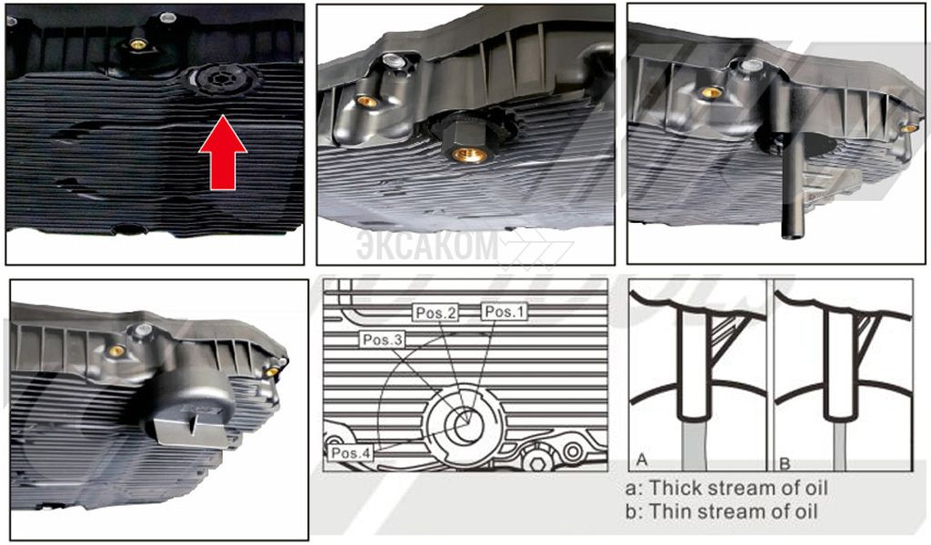 - Применяется для откачки и закачки ATF жидкости в 9-ступенчатой автоматической трансмиссии 9G-Tronic (тип 725.0) автомобилей Mercedes-Benz.