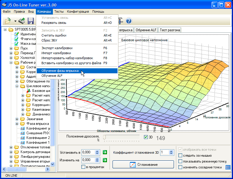 Программно-аппаратный комплекс J5 On-Line Tuner предназначен для настройки калибровок системы управления впрыском топлива типа Январь-7.2 в реальном времени.