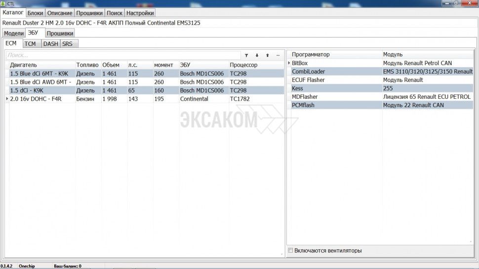 - Справочник содержит более 60 000 записей о блоках ECM, TCM, SRS, DASH, BCM.