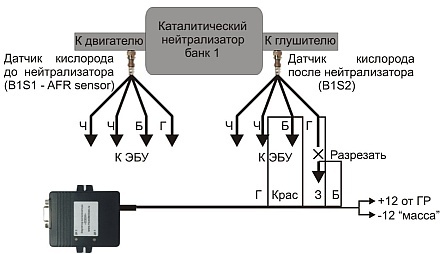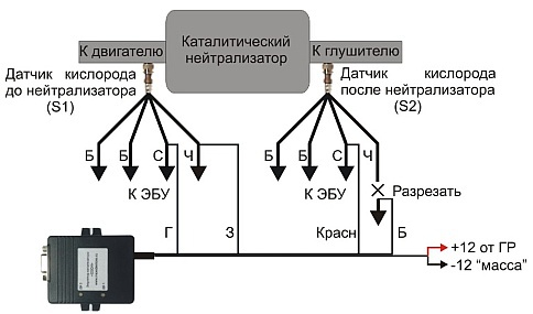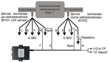 Для нормального функционирования данной схемы, обязательно требуется рабочий задний датчик кислорода, который должен быть помещен (оставлен после удаления катализатора) в поток выхлопных газов. Все подключения поизводятся к заднему датчику, возможна установка на место ДК2 универсального датчика «Bosch» или обычный датчик от а/м «ВАЗ».