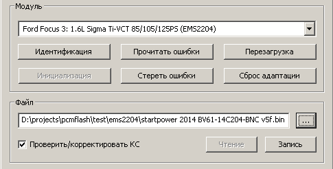 - Для большей части модулей, при записи бинарных файлов возможна проверка и корректировка контрольных сумм (КС), а также перенос VID блока (если требуется).