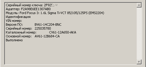 При нажатии "Идентификация" в информационном окне отобразятся данные прочитанные из модуля.