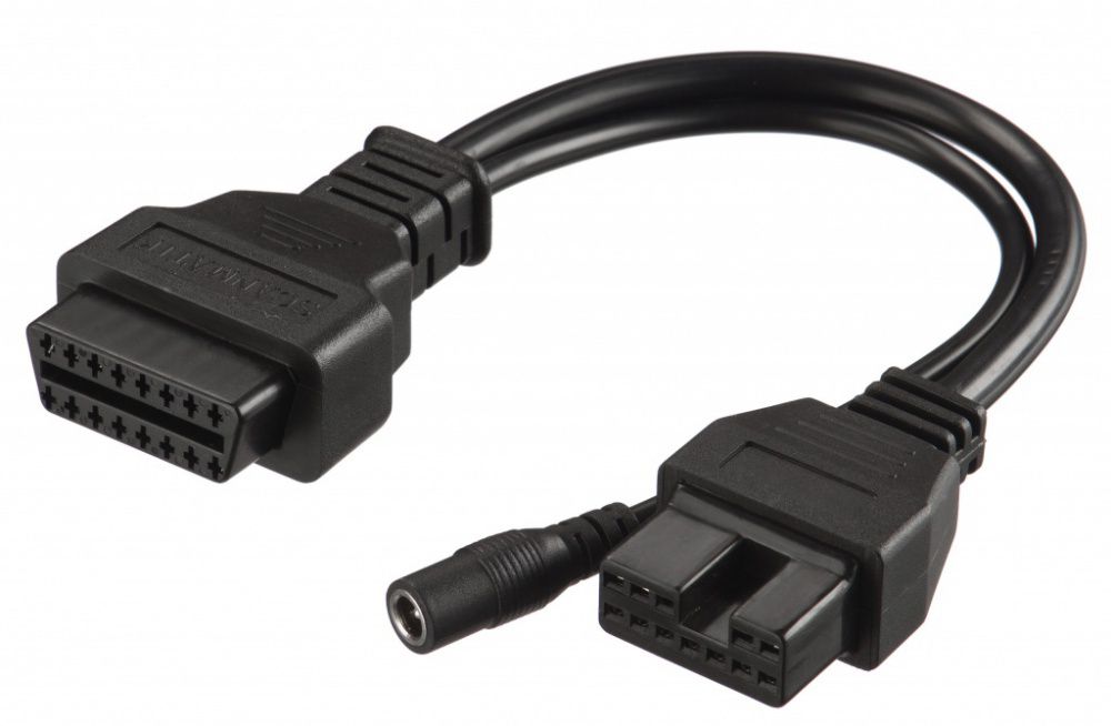 - переходник для а/м Mitsubishi/Hyundai с 12-контактным разъемом работающий по протоколам OBD2, на автомобилях Mitsubishi выпущенных с 1989 по 1998 г. и Hyundai выпущенных с 1989 по 1996 г, так же имеется дополнительный разъем питания
