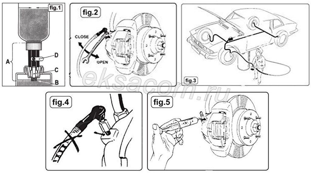 2. Применение приспособления не требует использования специализированных крышек резервуаров тормозной системы. Тормозная жидкость удаляется через штуцеры для прокачки тормозов.