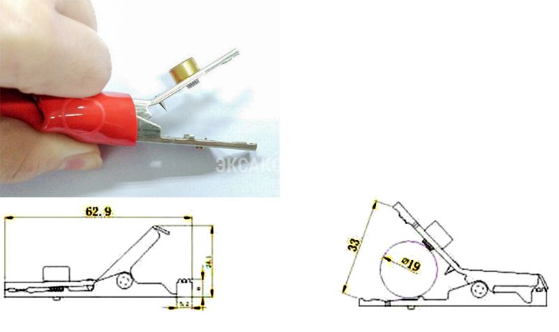 Прокалывающий зажим крокодил (красный, черный) с разъемом banana