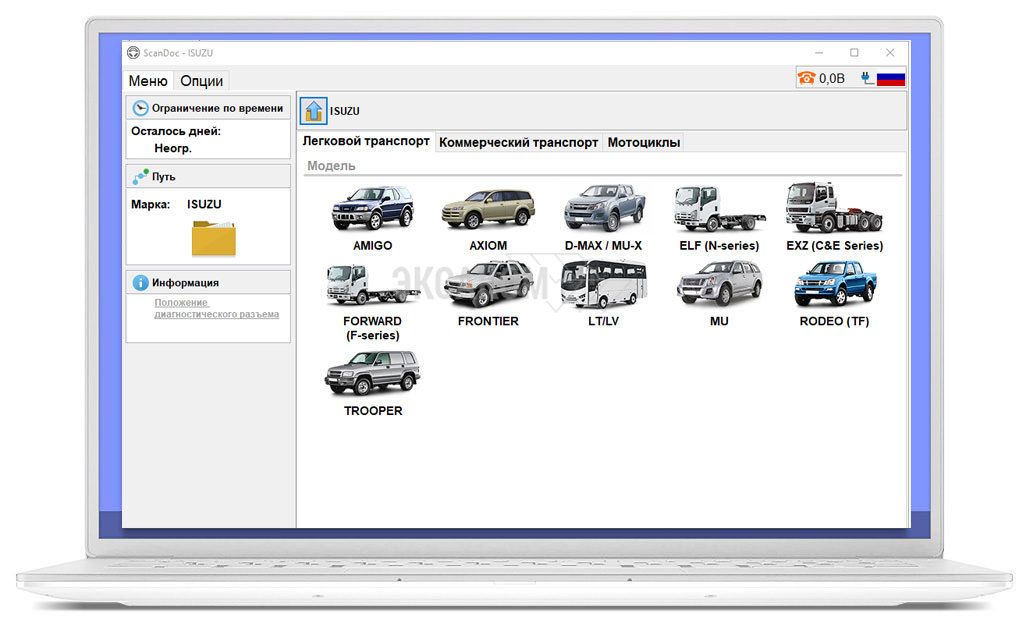 Модуль Isuzu - программный пакет для диагностики автомобилей марки Isuzu при помощи сканеров ScanDoc и ScanDoc Compact. Марка открывается в один клик через интернет. Заново загружать программу ScanDoc с сайта и устанавливать ее не нужно.