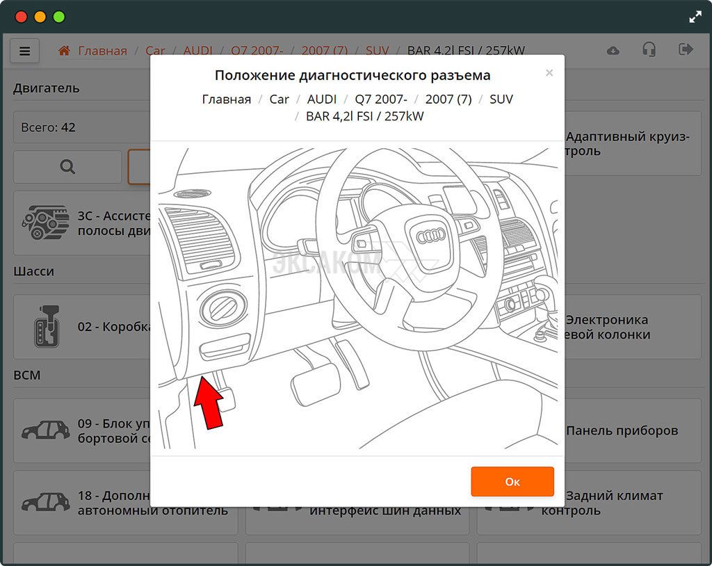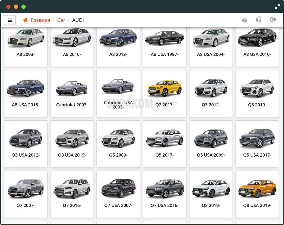 Выбрать марку автомобиля для диагностики достаточно просто благодаря тому, что марки разделены на регионы. Для выбора достаточно «кликнуть» по логотипу или названию марки, после чего пользователь попадет в режим выбора модели автомобиля. Каждая модель снабжена рисунком, взглянув на который можно убедиться в правильном выборе. Точный выбор модели очень важен, в зависимости от модификации автомобиля протоколы диагностики могут существенно отличаться.