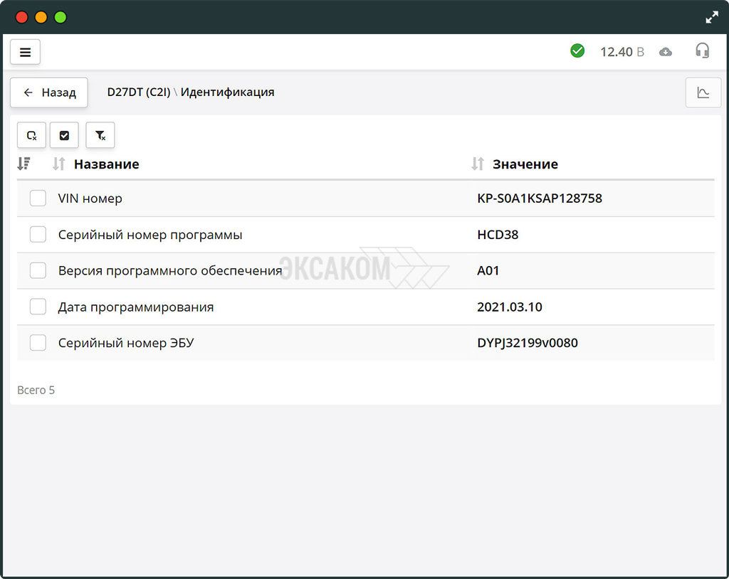 Идентификация выбранной системы позволяет получить информацию о типе установленного блока управления, версии его аппаратной реализации, кода для заказа запчасти, идентификаторе загруженного программного обеспечения. Также в некоторых блоках прописывается VIN автомобиля.